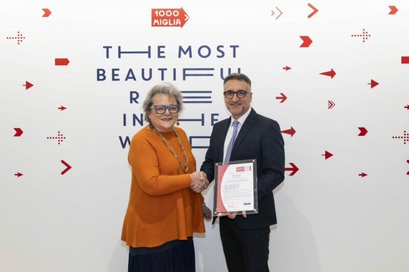 Presidente di 1000 Miglia Srl, Beatrice Saottini, ha ricevuto dalle mani di Andrea Filippi, Service Line
