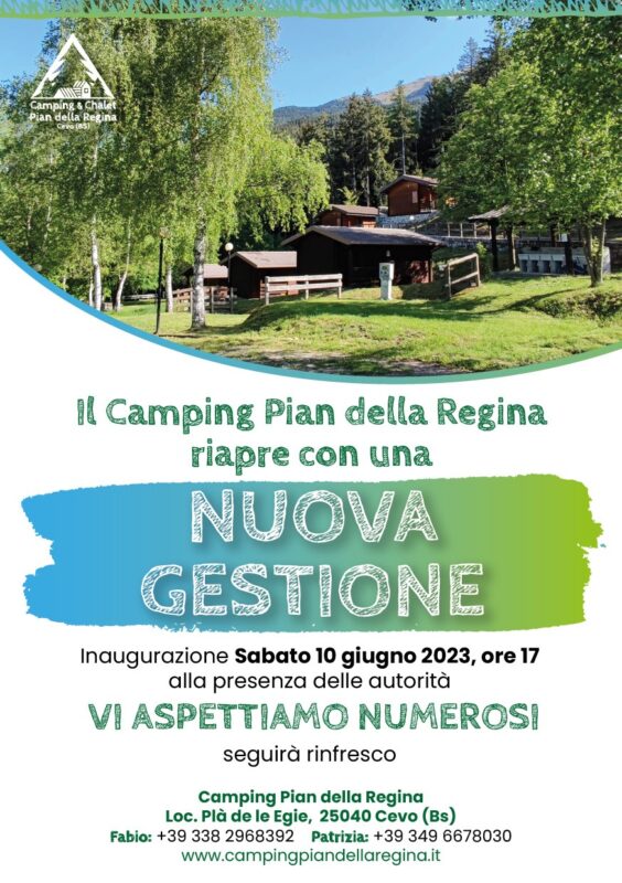 Sabato 10 giugno alle ore 17.00 località Plà de le Egie, ci sarà l’inaugurazione del Camping & Chalet Pian della Regina, che con la nuova gestione intende proporre molte novità: la prima e più importante è l’apertura della struttura per tutto l’anno.