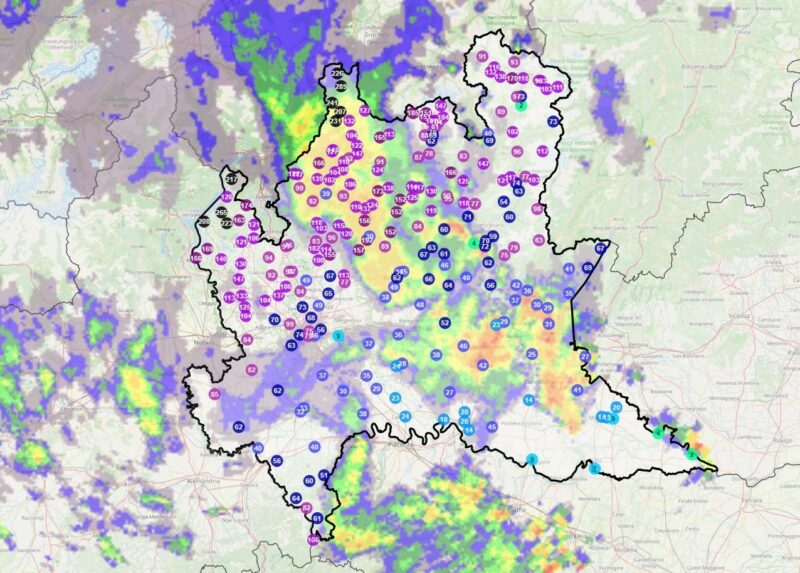 La fase temporalesca più attiva si è verificata nei primi due giorni dell’evento e sinora, nell’intero periodo, sulla Lombardia si è registrato un numero totale di oltre 164.000 fulmini.