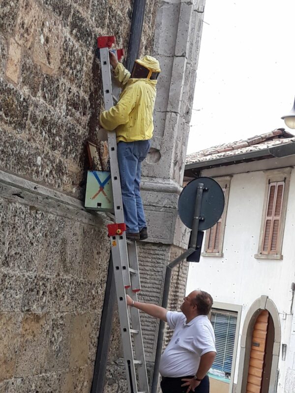 Un piccolo fuoriprogramma attorno all’ora di pranzo, che ha destato la curiosità di molti cittadini e richiesto l’intervento di un esperto apicoltore. Martedì 8 maggio uno sciame d’api ha scelto le pareti perimetrali della Basilica di Santa Maria Assunta a Gandino per cercare nuova sistemazione. Le api hanno vorticosamente ronzato in gran numero prima di scegliere una cavità presente nelle antiche pietre di crispone con cui è formata la struttura della monumentale chiesa. I commercianti della zona hanno richiesto l’aiuto di Franco Parolini, 78 anni, esperto apicoltore del paese, che è prontamente intervenuto con apposita attrezzatura per rimuovere con estrema delicatezza il corposo sciame formato da migliaia di api. In suo aiuto è intervenuto, nelle fasi conclusive, anche il figli Alberto, da poche settimane presidente provinciale degli Apicoltori Bergamaschi. “La sciamatura – spiega Parolini – è un processo naturale attraverso il quale si “duplicano” le famiglie delle api. A primavera, all’interno dell’alveare, l’attività diventa frenetica grazie alla fioritura: le api (fino ad ottantamila in un solo alveare) sono nel periodo di massima raccolta. Basti pensare che per raccogliere un chilogrammo di nettare un’ape bottinatrice deve compiere oltre sedicimila voli tra alveare e prato fiorito; i voli diventano oltre trentacinquemila per arrivare ad ottenere un chilogrammo di miele; i fiori visitati vanno da 80.000 a 6.000.000, per una distanza percorsa di 100.000 chilometri e circa 25.000 ore di lavoro per l’ape. E’ in questa fase “esplosiva” che nell’alveare si moltiplica la creazione di celle reali. Alla nascita della nuova ape regina, la vecchia cerca casa altrove, sciamando all’esterno con un buon numero di api”. Ad ammirare lo sciame e le operazioni di recupero (fra le 14 e le 15) si è radunata una piccola folla di curiosi, che per puro caso ha radunato autorità (l’ex sindaco Gustavo Maccari), clero (il vicario don Giovanni Mongodi) e sanitari (il dottor Claudio Lazzaroni). Da ricordare come le api mostrino una particolare affezione alla Basilica ed alle sue immediate vicinanze: negli ultimi anni sono stati recuperati diversi sciami anche nel vicino giardino del Centro Pastorale di via Bettera, ove risiede il parroco don Innocente Chiodi.