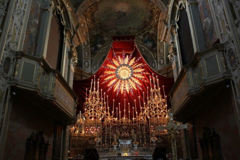 Prendono il via sabato 25 febbraio a Peia le celebrazioni per il Triduo dei Morti, caratterizzato in chiesa dalla grande Raggiera. Il manufatto (di autore ignoto) richiama la celeberrima Raggiera dei Caniana a Gandino. Nel 1873 fu oggetto di un importante intervento di doratura da parte di Angelo Giupponi di Lovere, poi, complice la Grande Guerra, andò un poco in disuso e fu riattivato (con luci elettriche) nel 1926. Sabato la messa vespertina è in programma alle 18, mentre domenica le celebrazioni accompagnate dalla Corale S.Antonio si tengono alle 8, 10, 15 e 18. Lunedì 27 febbraio la messa delle 10.30 sarà concelebrata dai sacerdoti della Fraternità 3, dai nativi e da coloro che a Peia hanno svolto il proprio ministero. Alle 15 seguiranno i Vespri e alle 20.30 la celebrazione di chiusura con il canto del Miserere.