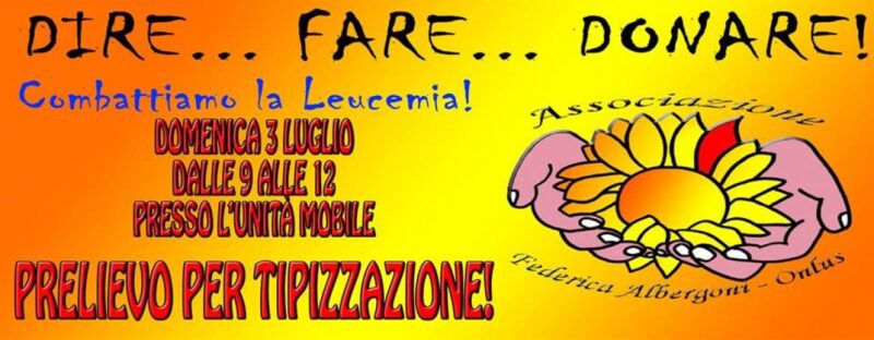 L’Associazione FEDERICA ALBERGONI ONLUS, in collaborazione con l’Oratorio di Piario e con l’appoggio del Comune di Piario, organizza un prelievo per tipizzazione presso il comune di Piario. La tipizzazione consiste nel prelievo di una piccola quantità di sangue dal braccio, che viene analizzata e confrontata con i malati in attesa di trapianto. In caso di presunta compatibilità si prosegue con altri accertamenti.