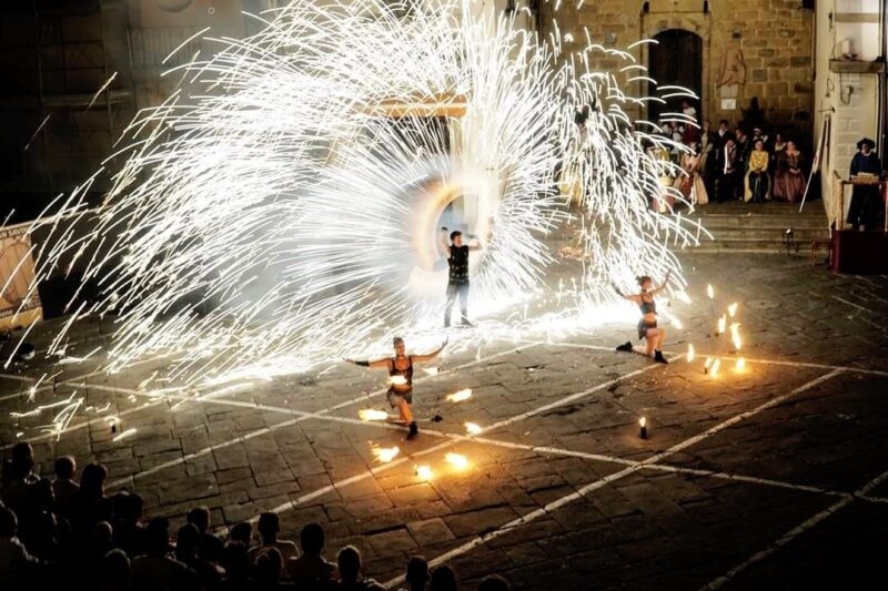 Virginia Raffaele) che si esibiranno in un grande spettacolo con oggetti luminosi ed infuocati, e danza aerea.