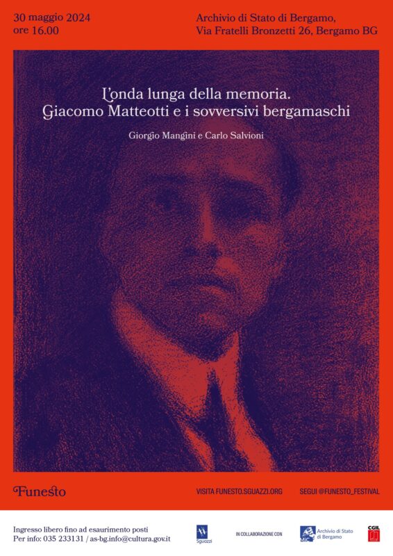 L’appuntamento con “L’onda lunga della memoria. Giacomo Matteotti e i sovversivi bergamaschi” è per giovedì 30 maggio alle 16.00 nell’Archivio di Stato di Bergamo di via Fratelli Bronzetti 26. L’evento è a ingresso libero, fino ad esaurimento posti.