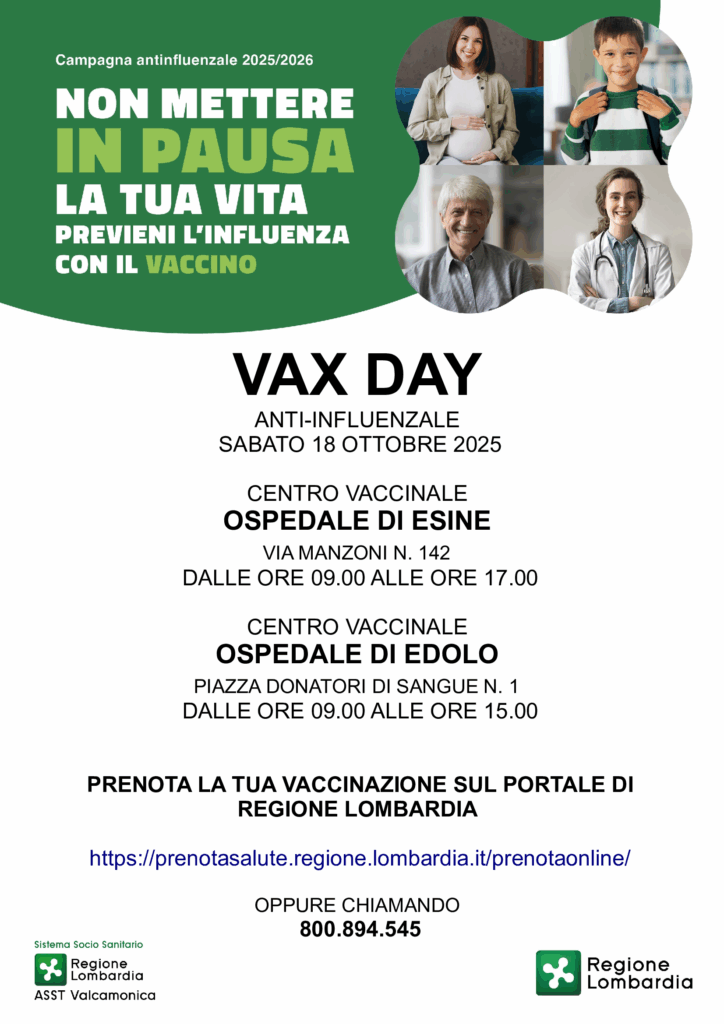 AL VIA LA CAMPAGNA ANTINFLUENZALE 2025-26 PRESSO ASST VALCAMONICA