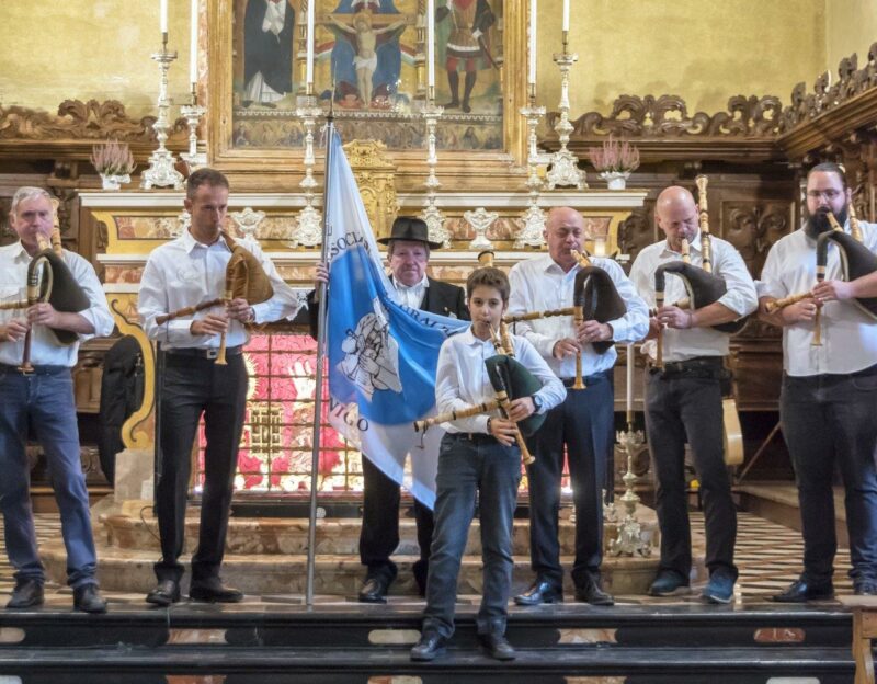 Un contesto mozzafiato, per un’elevazione musicale destinata ad unire strumenti a fiato delle più disparate provenienze. E’ in programma domenica 22 settembre alle ore 15 presso il Santuario della Ss.Trinità di Casnigo “Te Lodiamo Trinità” con cornamuse e zampogne della tradizione europea. L’evento è organizzato dall’Associazione Culturale il Baghèt con il patrocinio di Comune e Distretto “Le Cinque terre della Valgandino”, in collaborazione con la Parrocchia di Casnigo. Ad introdurre il pomeriggio fra musica e preghiera sarà l’arciprete don Massimo Cornelli, seguito dal neo nato gruppo “Tèra de Baghècc” che eseguirà, con l’accompagnamento del Coretto dei Re Magi e, all’organo, del maestro Nicola Ruggeri, l’inno “Te Lodiamo Trinità” che dà il nome all’iniziativa. E’ l’unico brano riconosciuto sia dalla tradizione cattolica che da quella protestante, in occasione della festa della Ss. Trinità. Un ideale dialogo che proseguirà con le esecuzioni successive, a cominciare dal “lament” proposto con la cornamusa scozzese da Guerino Previtali. Un brano espressamente richiesto dalla Regina Elisabetta in occasione della sua sepoltura. A proporre brani medioevali della tradizione mariana eseguiti con baghèt in sol saranno le Cornamuse Orobiche di Castione della Presolana, mentre Alberto Baccanelli, recentemente premiato al concorso nazionale di Ghisalba come “Giovane promessa del territorio” eseguirà la Pastorale di Casnigo, composta dal leffese Giuseppe Pezzoli (1831-1908). Sotto la stupefacente volta affrescata dai Baschenis (che fa meritare al Santuario casnighese l’appellativo di Sistina della Bergamasca, ci sarà spazio anche per la musette francese a 16 e 23 pollici di Gabriele Coltri, Pietro Locatelli e Alessandro Chiesa. Il Coretto dei Magi, accompagnato dai bagheter Alberto Baccanelli e Fabio Ferrari, eseguirà “Regina Maria”, caro alla tradizione locale nella notte dell’Epifania. Francesco De Chiara proporrà due marce processionali con la gaita galiziana, mentre il gruppo “Tanaiàda” con Carlo Musitelli (baghèt e flauto), Vittorio Grisolia (violino) e Andrea Sigismondi (chitarra) proporrà due brani cari alla tradizione campanaria, legati al repertorio di Pietro Ferrari detto Murì di Zogno e alla tradizione leffese. Proporranno anche “Dolce Madonna Bionda”, brano del repertorio di Giacomo Ruggeri “Fagòt”, il casnighese che fu ultimo suonatore di baghèt dell’intero arco alpino. Prima dell’esecuzione conclusiva di Dolce Sentire da parte del gruppo “Tèra de Baghècc” guidato da Monica Bonandrini, è in programma la doppia esecuzione di Valter Biella al baghèt e Giampiero Crotti alla fisarmonica. Un excursus che unirà canti spagnoli e francesi, segnalando le infinite frontiere della musica. Il baghèt, per antonomasia legato alla tradizione natalizia, è uno strumento povero, nato e cresciuto tra i pastori. I suonatori erano per la maggior parte contadini, e si ritrovavano nelle stalle d’inverno. Passata l’Epifania, poco prima del carnevale, lo strumento veniva riposto, per essere ripreso agli inizi dell’inverno successivo, a San Martino. In questi anni il lavoro di ricerca avviato proprio da Biella ha articolato una serie di iniziative, che solo quest’anno hanno visto i suonatori protagonisti in Polonia e portato a Casnigo dalla Spagna il duo aragonese formato da Sergi Llena (suonatore di gaita e polistrumentista) e Jesus Diez (voce). Data la programmazione dell’elevazione musicale è sospesa la visita guidata al Santuario.