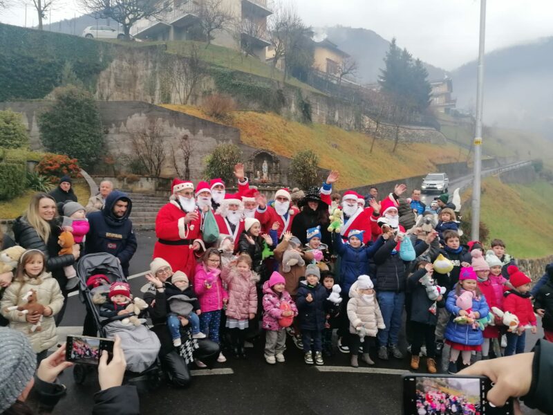 Il meteo non certo ideale non ha fermato lunedì 6 gennaio a Gandino l’arrivo della Befana nell’area sottostante il Santuario di San Gottardo a Cirano. Pioggia e nebbia hanno reso impossibile il decollo e l’atterraggio con il parapendio, ma attorno a mezzogiorno i volontari del “Volo Libero Monte Farno” e la Pro Loco hanno messo in atto il “piano B”, con arrivo a piedi e distribuzione di dolci ai tanti bambini comunque accorsi per l’evento. L’iniziativa della “Befana dal Cielo” si ripete da più di 20 anni e nacque grazie al generoso impegno di Diego Servalli, pioniere del volo libero, morto prematuramente nel 2015 per un incidente stradale. Ad affiancare la Befana nella distribuzione e nelle immancabili foto ricordo anche uno stuolo di assistenti vestiti da Babbo Natale. Per tutti appuntamento sin d’ora al 2026, sperando nel bel tempo.