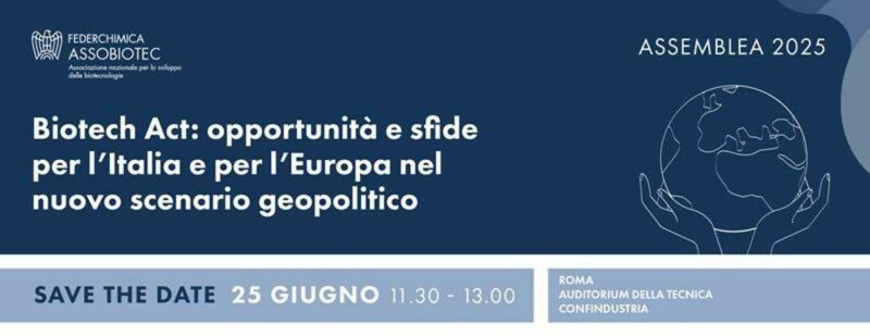 (Adnkronos) – In occasione della sua Assemblea annuale, Assobiotec-Federchimica organizza il convegno pubblico: “Biotech Act: opportunità e sfide per l’Italia e per l’Europa nel nuovo scenario geopolitico” per domani, Mercoledì 25 giugno 2025, dalle ore 11.30 alle 13.00, all’Auditorium della Tecnica – Confindustria, Roma. L’evento sarà un momento di confronto ad alto livello sul ruolo strategico delle biotecnologie in Europa e in Italia, tra competitività, autonomia tecnologica e geopolitica.