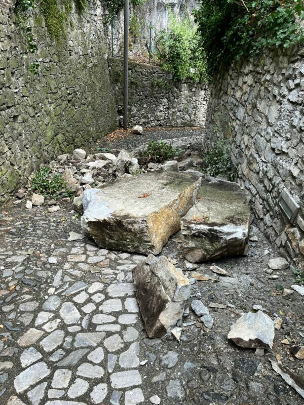 BRENO, DISTACCO DI ROCCIA SULLA STRADA PER IL CASTELLO, LAVORI IN CORSO