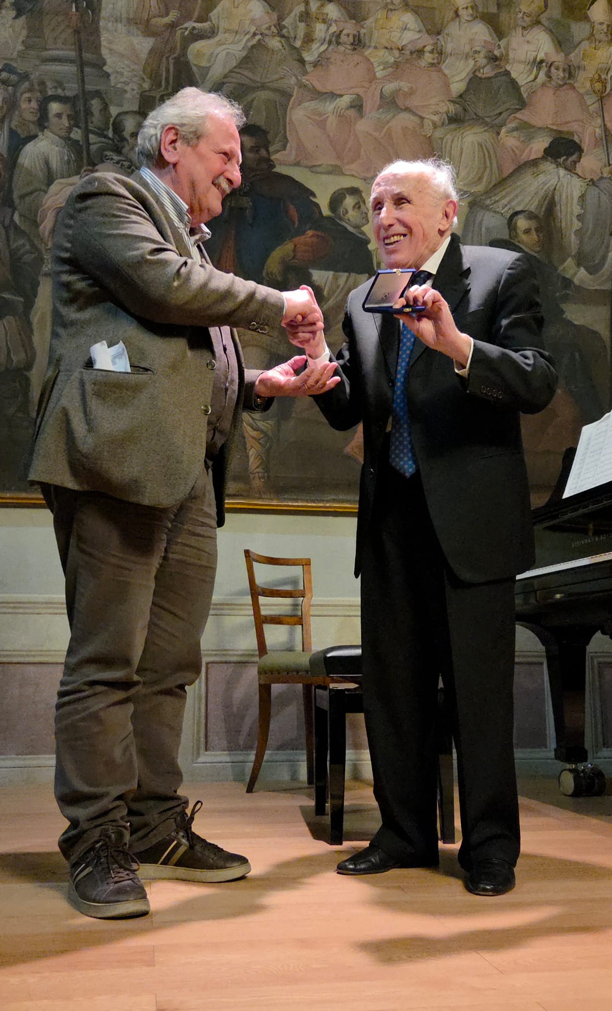 «Nello spirito di ricordo a chi ha creato, mantenuto e voluto la Stagione Concerti dell’Accademia Tadini vorremmo ringraziare il Maestro Bruno Canino. È stato per noi una colonna importante in questa stagione: sedici concerti con quello di questa sera, il primo 65 anni fa. Vogliamo esprimere il nostro affetto, la nostra stima e il ringraziamento per questo affiancamento e la partecipazione; un po’ della Stagione Concerti della Tadini è anche merito Suo».