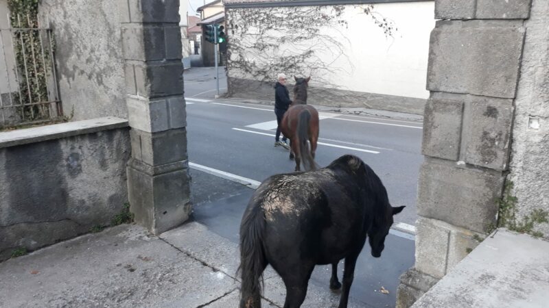 Hanno pensato di fare un salto a scuola proprio in coincidenza con l’inizio delle lezioni, seminando preoccupazione e qualche sorriso. Cavalli in libertà attorno alle 8 di giovedì 5 dicembre a Gandino. Gli animali sono fuggiti da un appezzamento di terreno in via Foscolo, alla periferia del paese, raggiungendo il viale del Cimitero e la zona di via Cesare Battisti, dove ha sede la scuola primaria e dove le lezioni erano appena iniziate. Comprensibile lo spavento dei numerosi passanti, anche se gli animali sono apparsi tranquilli, quasi incuriositi dall’originale passeggiata fuori programma. Il personale non docente ed alcuni genitori hanno avuto la prontezza di indirizzare i cavalli verso il retro della scuola, in modo non avessero ulteriori vie di fuga. A risolvere la situazione è stato poi il tempestivo intervento della Polizia Locale e dei Carabinieri di Gandino, ma soprattutto dell’allevatore proprietario, che da subito si era messo all’inseguimento degli animali. I cavalli sono stati condotti di nuovo al proprio recinto.