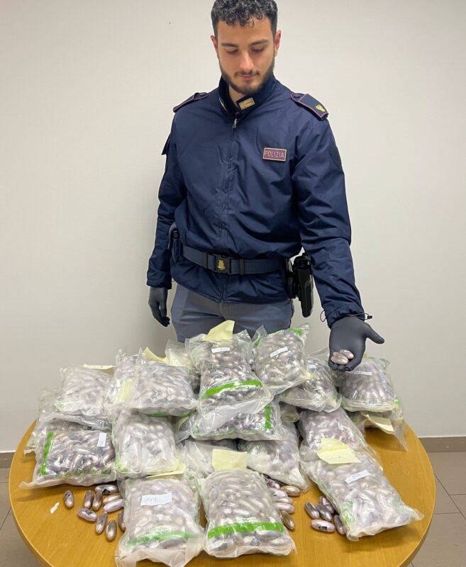 È stato subito fermato e identificato dagli agenti e, a seguito di perquisizione, all’interno del suo box, sono stati rinvenuti e sequestrati 26.72 kg di hashish suddivisi in ovuli in confezioni di plastica sottovuoto.