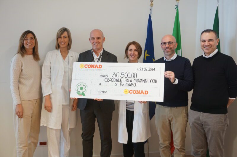 Conad Centro Nord ha devoluto 36.500 euro all’Ospedale Papa Giovanni XXIII. È il risultato di quanto raccolto da ottobre a fine dicembre 2023 nei punti vendita Conad delle province di Bergamo, Lecco e Sondrio grazie ai clienti che hanno aderito all’iniziativa di collezionamento solidale “Una collezione da favola”. Il contributo di Conad Centro Nord sarà destinato al Progetto Giocamico dell’ASST Papa Giovanni XXIII, percorso di sostegno psicologico ai pazienti più piccoli che dà supporto psicologico ai bambini e alle famiglie che devono affrontare percorsi diagnostici e terapeutici lunghi e complessi.