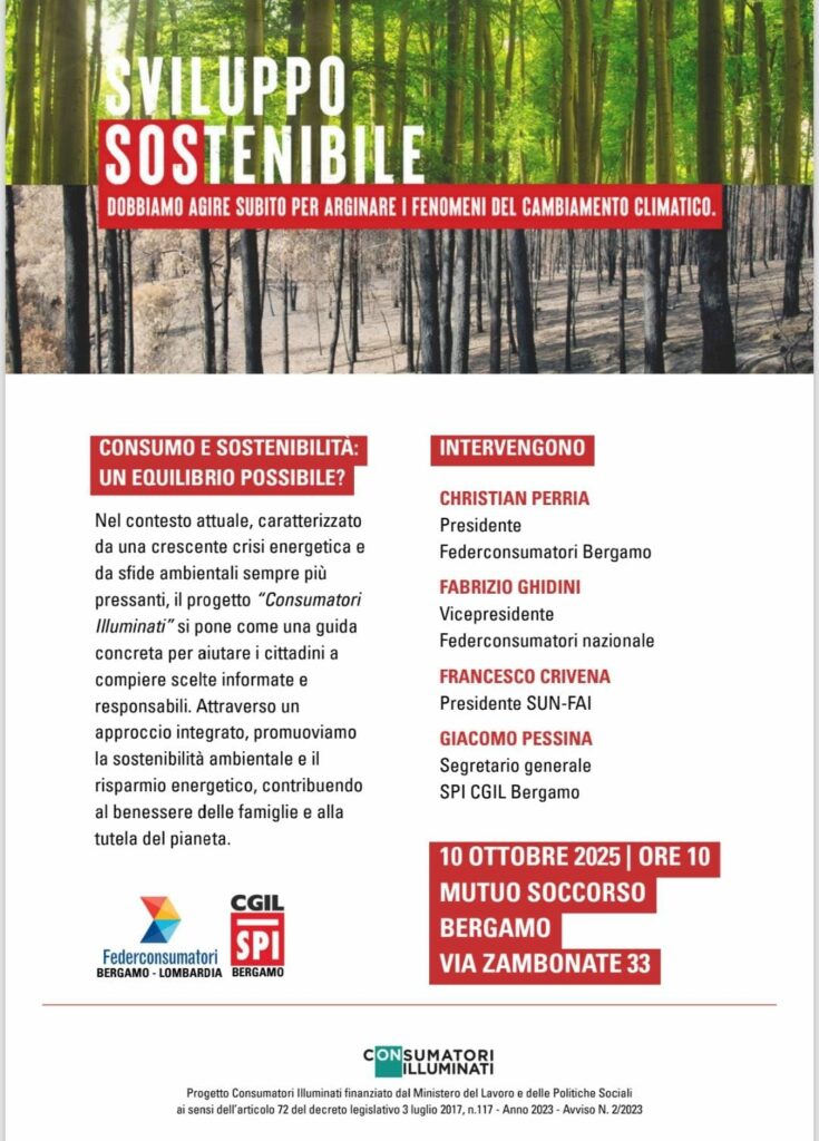 L’iniziativa è organizzata da Federconsumatori Bergamo e Lombardia e SPI CGIL Bergamo.