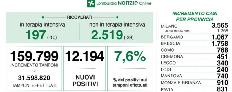 COVID, i dati di martedì 8 febbraio
