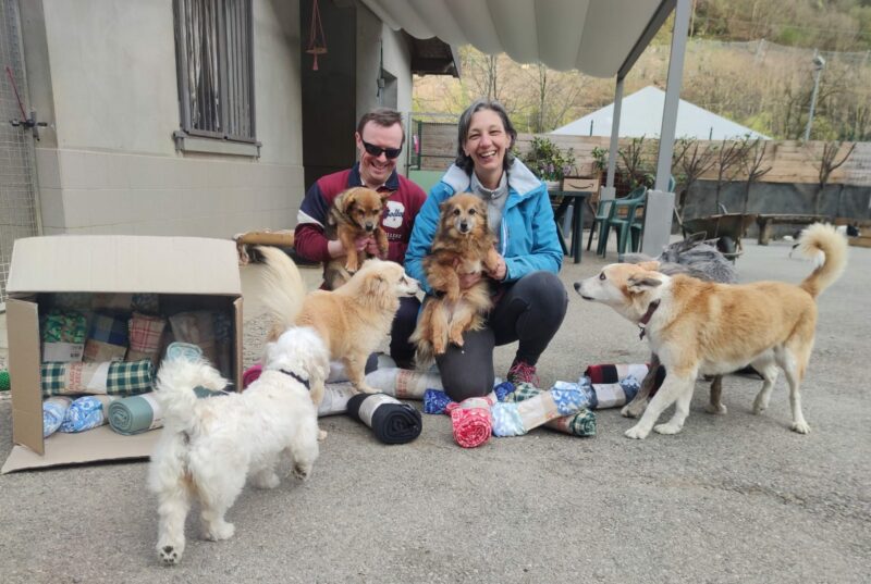A ricevere il regalo (predisposto in collaborazione con la ditta Zambetti, partner di Leffegiovani nell’organizzazione a Pasquetta della marcia dei Coertì) c’erano anche i volontari Serena Nava e Gabriele Rondi, paratleta di vaglia che giusto lo scorso marzo ha conquistato un oro nel salto in lungo e un bronzo nei 60 metri ai Campionati Italiani Indoor di Atletica Leggera disputati ad Ancona. “Le centinaia di piccole coperte ricevute in dono – spiegano – saranno davvero utili per rendere confortevoli i giacigli dei circa quaranta cani presenti in struttura, ma anche per realizzare, con torsioni incrociate, alcuni salsicciotti da mordere, utili all’educazione e alla salute dei cani”.