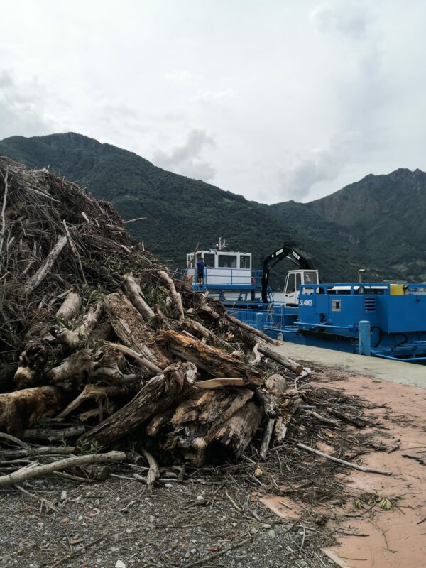 Raccolte 100 tonnellate di materiale nell’alto Sebino. Fusti, ramaglie e plastiche trascinate a valle dal fiume Oglio nell’ultimo mese. Il maltempo che si è abbattuto sul Sebino in questo ultimo mese, ha creato non pochi problemi nella zona dell’alto lago. Le forti piogge cadute sulla Vallecamonica, hanno “gonfiato” il fiume Oglio, che ha trascinato con la sua corrente rami, alberi e altro materiale – tra cui plastica e polistirolo – depositando il tutto nell’area compresa tra Pisogne, Lovere e Costa Volpino. Su richiesta dell’Autorità di Bacino, si sono subito attivati i battelli spazzino in dotazione alla società MPL, che in diversi giorni di lavoro, sono riusciti a recuperare gran parte del materiale, scaricandolo poi in località Pizzo, in attesa di essere poi smaltito. In totale, ad oggi, sono stati recuperati centinaia di metri cubi di materiale legnoso, per un peso di circa 100 tonnellate. Il materiale recuperato verrà quindi trasportato in un deposito di stoccaggio a Montichiari.