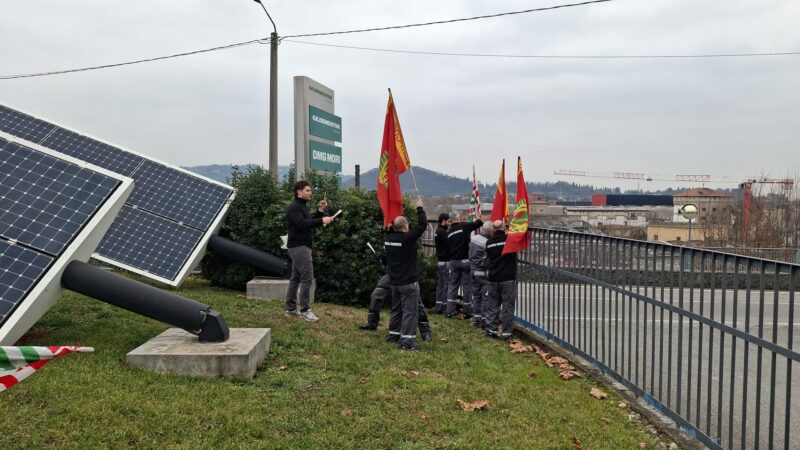 “È l’unica azienda che ha avuto una reazione così forte – commenta Fabio Mangiafico, Fiom CGIL –. Le bandiere restano perché da mesi il contratto non viene rinnovato. L’azienda parla di proprietà privata, ma la fabbrica non appartiene solo al consiglio di amministrazione: è anche di chi ci lavora otto ore al giorno. Tanto più che DMG investe tempo ed energie nel dipingere i dipendenti come parte di una grande famiglia, ma in questa grande famiglia ci si dimentica che il salario dei lavoratori è quotidianamente mangiato dall’inflazione, e ci si indigna se protestano”.