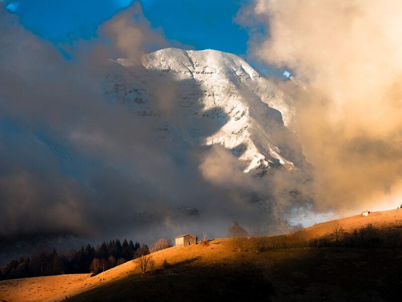 Brembana. “L’imponente mole bianca della montagna, quasi avvolta dalle