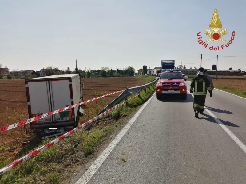 I Vigili del Fuoco del distaccamento di Romano di Lombardia e di Palazzolo intervengono per un incidente stradale a Palosco sulla SP98 intorno alle 10:30. Un uomo ha perso il controllo del suo camion ed è uscito fuori strada, nessun ferito. I VVf dopo aver messo in sicurezza il mezzo hanno bonificato l’area compromessa.