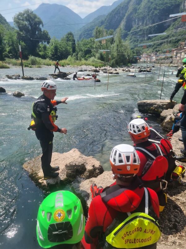 Dal 20 al 22 giugno, il campo slalom di Valstagna, nel comune di Valbrenta (VI), ha ospitato una sessione di formazione riservata ai tecnici delle squadre forra del Corpo Nazionale Soccorso Alpino e Speleologico (CNSAS) provenienti da Lombardia, Trentino, Piemonte e Veneto. Un campo slalom è una sezione di torrente attrezzata con paletti e rocce per creare movimenti d’acqua specifici, usato per kayak, canoa, rafting e corsi di acque vive. L’attività è stata condotta con il supporto di due istruttori della Scuola Nazionale Tecnici di Soccorso in Forra (SNAFOR). I partecipanti si sono concentrati sulla gestione del rischio acquatico, con esercitazioni in acque vive e scenari alluvionali. Oltre ai moduli formativi tradizionali – che prevedono la conoscenza delle misure di sicurezza a bordo torrente, le tecniche di movimento in acqua e il nuoto in acque vive – i tecnici hanno potuto testare nuovi strumenti operativi progettati per le emergenze alluvionali. Tra questi, particolare attenzione è stata dedicata a una nuova dotazione di gommoni speciali, disponibili in diversi formati in base agli scenari di utilizzo. Trattandosi di imbarcazioni che necessitano di tecniche che utilizzano corde e che richiedono manovre particolari, è necessaria una formazione specifica per il loro impiego. Il modulo formativo è stato sviluppato per rispondere alle nuove esigenze operative del CNSAS in ambito di protezione civile, con particolare riferimento agli interventi in contesti alluvionali, purtroppo sempre più frequenti.
