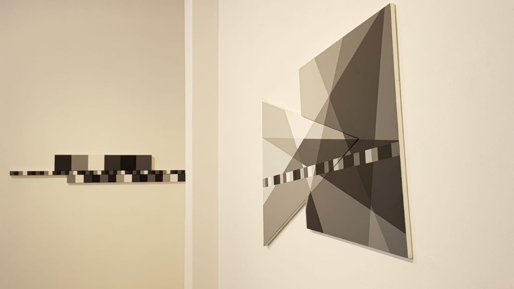 Del primo gruppo fa parte, ad esempio, il lavoro che presta il titolo all’intera mostra, una rigorosa struttura che ricorda le griglie moderniste concettuali in bianco e nero, ma nella quale il “bianco” è costituito in realtà dall’immagine di una lastra di eternit decontestualizzata dalla foto originaria, una vera e propria irruzione del significato in quella che a prima vista appariva come pura forma. Il secondo gruppo contempla invece lavori di marca più propriamente costruttivista, che richiamano, con le loro logiche formali, archetipi universali della vita, della morte e del rapporto tra volontà e destino. Ulteriore tratto unificante sarà la mancanza di colore, la scelta di affidarsi unicamente al bianco e al nero; scelta non meramente formale, ma legata alla profonda simbologia della dialettica tra due possibilità”.