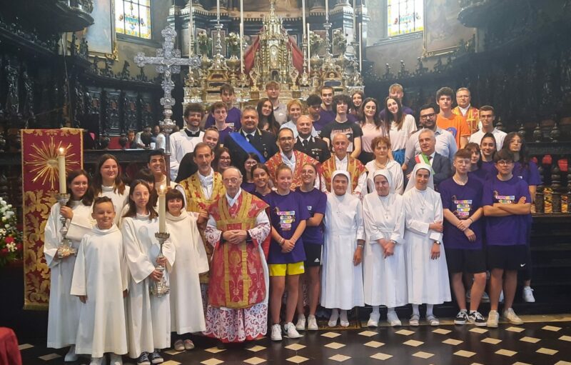 Domenica 2 luglio la comunità di Gandino ha celebrato la festa dei Ss.Martiri Patroni (Ponziano papa, Valentino prete, Quirino tribuno e Flaviano prefetto) e ricordato in Basilica alcuni particolari anniversari di sacerdoti e suore legati alla comunità gandinese. La solenne concelebrazione, introdotta dal prevosto don Ferruccio Garghentini, è stata accompagnata dalla Schola Cantorum Luigi Canali e dal gruppo strumentale Just a Brass Quintet che con fiati e percussioni hanno dato una cornice sontuosa alla mattinata. Sono stati ricordati i 35 anni di sacerdozio di don Carlo Caccia (gandinese oggi parroco di Credaro) ed i 5 di don Manuel Valentini, curato a Gandino e originario di Nembro. Quest’ultimo ha presieduto la celebrazione, cui ha partecipato anche un nutrito gruppo di animatori CRE in divisa. La gratitudine della comunità si è allargata anche a suor Rosa Passera e suor Angela Piffari delle Orsoline, a cinquant’anni dalla prima professione religiosa, nonchè alla gandinese suor Giusÿ Rudelli, attiva alla Materna di Casnigo, nel venticinquesimo di professione. Nell’omelia don Valentini ha ricordato come “i pastori sono tali solo se dispongono di un adeguato gregge” e sottolineato come “occasioni come queste consentono di provocare dialogo e presa di coscienza della comunità, responsabilizzando ciascuno di noi sul farsi carico delle altrui necessità, quale segno concreto dell’essere figli di Dio”.