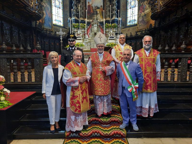 La concelebrazione è stata presieduta da mons. Eugenio Coter, curato a Gandino dal 1985 al 1991 e Vescovo di Tibiuca e del Vicariato Apostolico del Pando dal 2013. Da poco rientrato dalla Bolivia per un breve periodo di vacanza, mons. Coter festeggia il quarantesimo di ordinazione. Nell’omelia ha ricordato un episodio della sua espeirenza a Gandino, quando si trovò nella duplice veste di volontario della Croce Rossa per i servizi d’emergenza e sacerdote. “Diedi l’estrema unzione in pronto soccorso ad un giovane tossicodipendente.