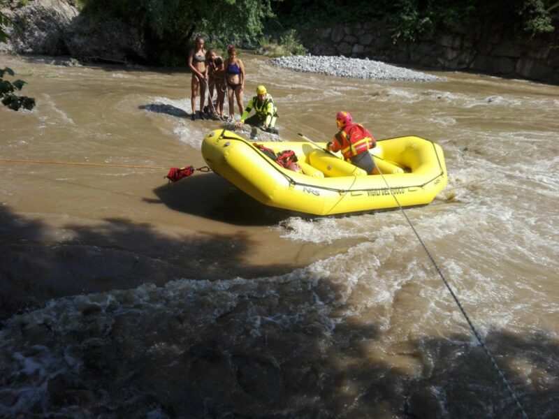 Grande intervento in Val Seriana nel pomeriggio di giovedì 31 luglio per i Vigili del Fuoco che hanno recuperato circa una ventina di persone rimaste bloccate in mezzo al fiume Serio.