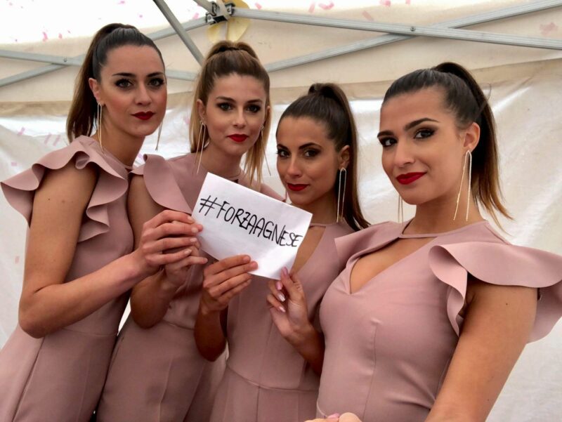Dopo la bella notizia del risveglio graduale dal coma farmacologico della nostra guerriera ciclista juniores 17)enne bergamasca AGNESE ROMELLI ecco che arriva una dedica speciale per lei dalle 4 bellissime miss dal cuore d’oro del giro d’Italia 2018 #amoreinfinit01 Asia ,Sofia,Giorgia e Camilla e le ringrazio tutte e in modo particolare alll’amica Asia Fornari (la prima a destra ) per la foto e foglietto con scritto #forzaAgnese dalla tappa di oggi Praia a mare /monte vergine dove oggi hanno premiato il vincitore Richard Carapaz della movistar più la maglia bianca ,la maglia rosa Simon Yates e la maglia azzurra Esteban chaves della Mitchelton-scott e la maglia ciclamino di Elia Viviani della Quick step floors che come sapete tutti ha fatto una dedica speciale ad Agnese dicendogli di vincere la sua volata e oggi c’è l’ha fatta …e aspettiamo domani il suo risveglio graduale …detto questo #ForzaGuerriera …siamo tutti con te e aspettiamo domenica …. #cuoreciclista #giro101 #missdelgiro101 ..admin Alex ,il papà Alberto Francesco Romelli ,la mamma Vittoria Trussardi e lo staff del gruppo passione per il ciclismo”