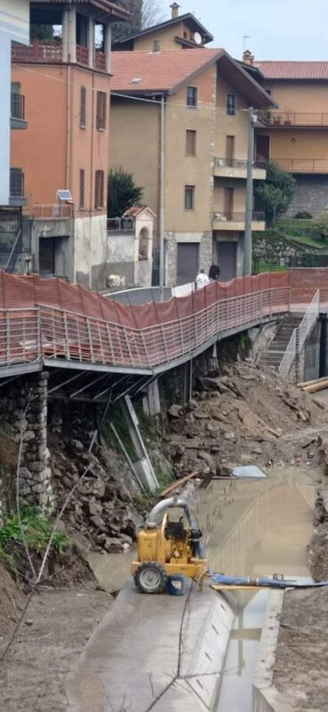 Un tratto di circa 100 metri di via Paglia a Lovere è crollato nella notte tra giovedì 7 e venerdì 8 marzo, danneggiando anche la passerella pedonale adiacente. La strada è stata chiusa, bloccando l’accesso all’azienda Lucchini e creando disagi per rifornimenti e consegne.
