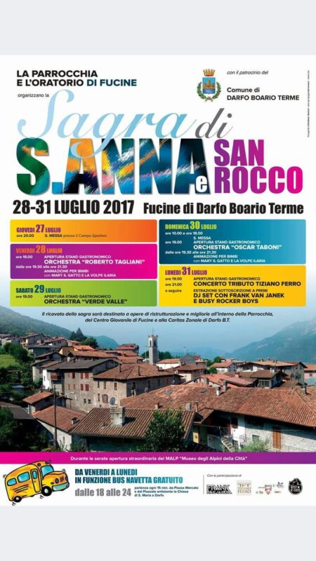 Da giovedì 17 a lunedì 31 luglio la piccola frazione di Fucine di Darfo si veste a festa per la tradizionale sagra dei Patroni Anna e Rocco.