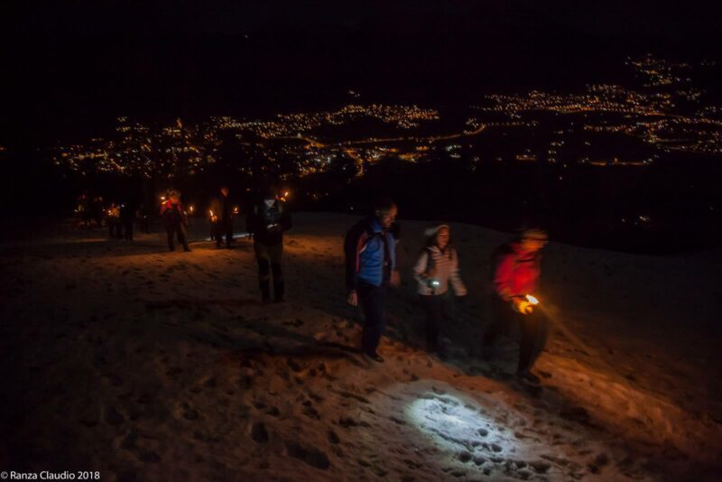 Tanti i partecipanti alla tradizionale fiaccolata della vigilia, dalla Spessa di Clusone a San Lucio organizzata dal CAI Clusone. Partiti alle 22.30 circa, con torce e lampade frontali seguendo il consueto percorso che transita da Beur, poi sosta al Roccolo Zuccone di Giannino Trussardi, dove è stato offerto un tè caldo, per arrivare a San Lucio. A mezzanotte esatta Don Gianfranco Scandella ha celebrato la Santa Messa. Grazie di cuore a Don Gianfranco che nonostante tutti gli impegni sè reso disponibile per la celebrazione; grazie a Enrico Fornoni e Natalia Ratti per le musiche e canti della Messa, ringrazio Davide “Bonzi” ed il Soccorso Alpino per l’assistenza, i miei colleghi del direttivo Cai Clusone e tutti i volontari che hanno collaborato per l’evento. Grazie a Paolo Valoti, presidente CAI Bergamo e Unione Bergamasca CAI, Alvaro Peloni, vicepresidente CAI Lovere per avere condiviso con noi la vigilia di Natale a San Lucio.