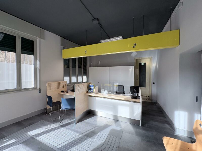 Tra gli interventi effettuati lavori di tinteggiatura, nuovi arredi, nuova illuminazione a led a basso impatto energetico un rinnovamento totale dell’ambienti all’interno della sala al pubblico con l’introduzione di nuove postazioni ribassate per favorire una migliore relazione con la clientela.
