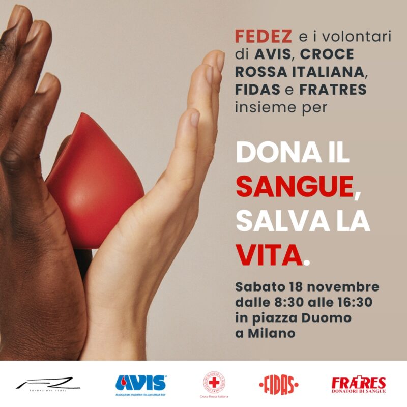 Sabato 18 novembre piazza Duomo a Milano ospiterà “Dona il sangue, salva la vita”, evento di sensibilizzazione che nasce dalla collaborazione tra la Fondazione Fedez e il CIVIS, il Coordinamento Interassociativo dei Volontari Italiani del Sangue che riunisce AVIS, Croce Rossa Italiana, Fidas e Fratres.