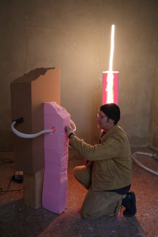 Si tratta di una mostra estremamente innovativa, basata sull’uso della spugna come filo conduttore e racconto di una materia indisciplinata. Il titolo dell’esposizione è proprio questo: “Unruly, indisciplinata”, per una materia che trova spazio dove non c’è e si esprime in diverse forme e colori. E’ da diversi anni che l’artista sta studiando l’utilizzo di questo materiale che l’ha incuriosito e fatto innamorare della sua capacità espressiva.