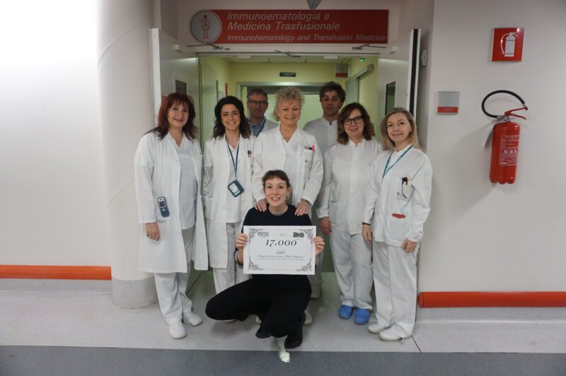 Nella foto: l’équipe del SIMT – Servizio di Immunoematologia e Medicina Trasfusionale con Beatrice, potenziale donatrice.