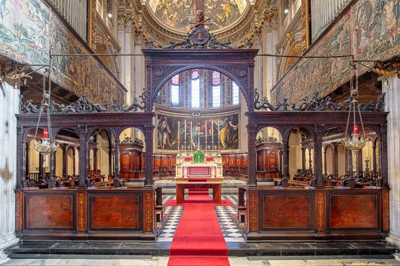 Al termine di un anno e mezzo di lavori le preziose tarsie del Coro ligneo di Giovan Francesco Capoferri e Lorenzo Lotto, all’interno della Basilica di Santa Maria Maggiore, nel cuore medievale di Bergamo Alta, sono ammirabili in tutta la loro ritrovata bellezza, e nell’anno di Bergamo Brescia Capitale Italiana della Cultura 2023 tornano ad essere interamente fruibili da parte del pubblico. Dopo la sezione del Coro dei Laici (1553-1555), inaugurata nell’aprile 2023, torna oggi all’originario splendore anche il Coro dei Religiosi, il più antico (1523-1533).
