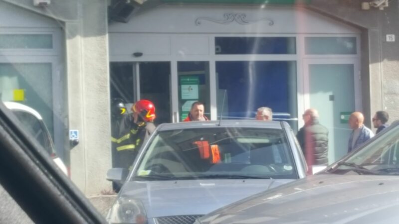 Incastrato nella banca, intervengono i VVF