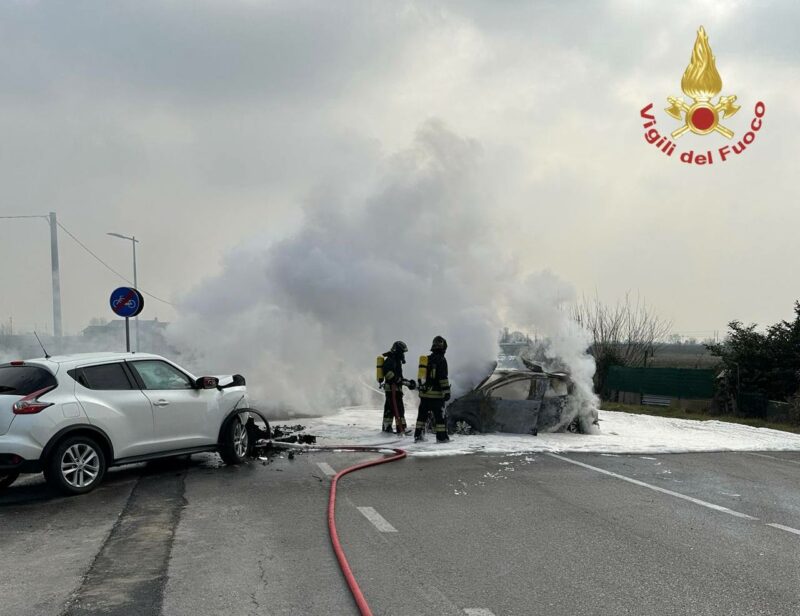 Un incendio di un’auto è scoppiato in seguito ad un incidente tra due mezzi a Treviglio in via Calvenzano, alle 13:16 di oggi. I Vigili del Fuoco del distaccamento volontari di Treviglio sono stati immediatamente chiamati in aiuto e sono intervenuti prontamente per spegnere le fiamme. Fortunatamente, non ci sono stati feriti. Dopo aver domato le fiamme, i vigili del fuoco hanno messo in sicurezza i mezzi coinvolti nell’incidente e hanno bonificato l’area interessata. Sul luogo dell’incidente sono intervenute anche due ambulanze, la Polizia Locale e la Polizia di Stato per assicurarsi che la situazione fosse sotto controllo.