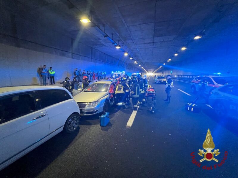 incidente multiplo tra veicoli, con feriti, un principio d’incendio e la necessità di