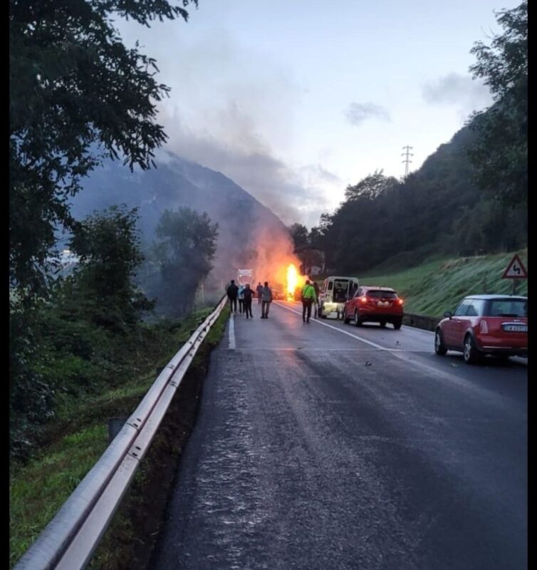 Grave incidente stradale questa mattina, poco dopo le 7:00, lungo la **Strada Statale della Val Seriana** nei pressi di **Casnigo**, in zona Itema. Due auto si sono scontrate violentemente e una di esse ha preso fuoco subito dopo l’impatto.