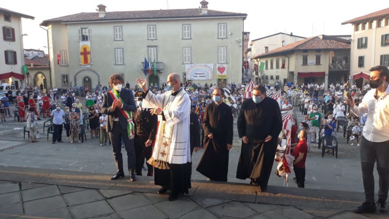 Mascherine e distanziamento d’obbligo, ma anche e soprattutto intensa emozione e non poca commozione. Sabato 12 settembre la comunità parrocchiale di Urgnano ha salutato l’ingresso del nuovo Parroco don Stefano Bonazzi, nominato lo scorso maggio, dopo la morte causa Covid 19 di don Mariano Carrara. Oltre duecento i fedeli che hanno potuto accedere alla parrocchiale, mentre molti altri hanno seguito arrivo e celebrazione sul sagrato, con l’ausilio di grandi schermi. Ad accogliere don Stefano il Corpo Musicale, gli striscioni dei giovani e della Scuola dell’infanzia Don Bosco e, proprio ai piedi dalla scalinata, e dal gruppo Sbandieratori e Musuci dell’Urna. Il sindaco Efrem Epizoi ha porto il benvenuto, assicurando ascolto, sostegno e collaborazione. È seguita la solenne concelebrazione, guidata dal delegato vescovile don Roberto Gusmini, parroco di Spirano e moderatore della locale Fraternità Presbiterale. Don Stefano Bonazzi, 56 anni, è nato in Valle Seriana nel 1963 quando la famiglia risiedeva a Leffe (oggi a Gandino). È stato ordinato nel 1987 dal cardinal Carlo Maria Martini, arcivescovo di Milano, stante la malattia dell’allora vescovo di Bergamo Giulio Oggioni. È stato curato a Grumello del Monte (1987-94) e Stezzano (1994-97). Nominato prevosto di Rota Imagna nel 1997 (dove è rimasto sino al 2010) e di Brumano dal 2008, ha guidato negli ultimi dieci anni la parrocchia di San Giustino a Roma, sul viale Alessandrino. Anche nella capitale, attraverso You Tube, è stato possibile seguire la celebrazione ad Urgnano. Domenica 13 settembre i festeggiamenti si completeranno con la celebrazione al Santuario della Basella.