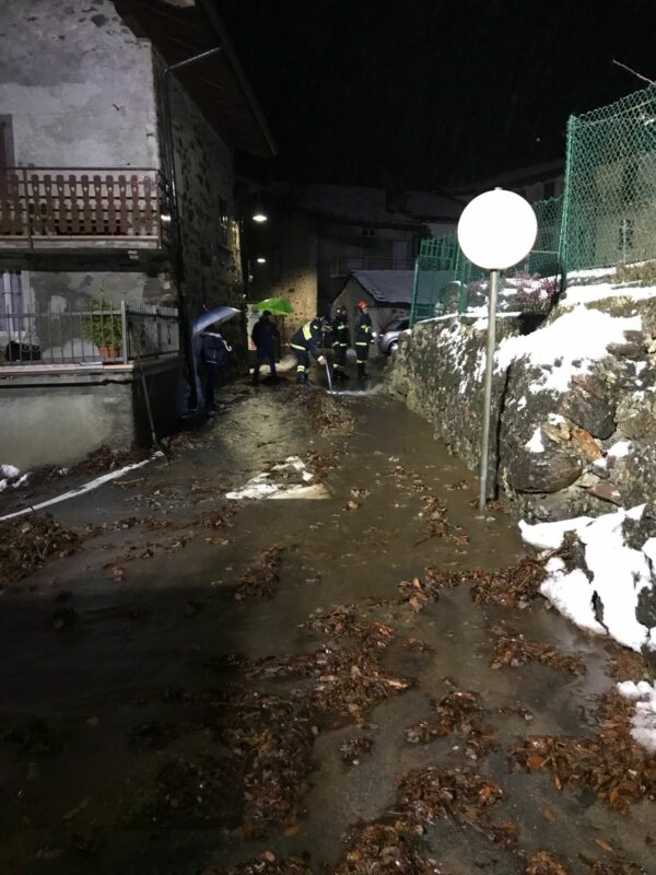 Per le forti piogge della serata e la neve che ha iniziato a sciogliersi per un forte rialzo termico (+ 5 gradi a mezzanotte intorno ai 500 metri di quota) i torrenti hanno iniziato a gonfiarsi e a scendere precipitosi. A Gandellino un torrente è fuoriuscito dall’alveo, ha occupato la sede stradale ed ha invaso scantinati, garage e cortile di una casa. Immediato l’allarme al 112 che ha inviato sul posto i Vigili del Fuoco di Clusone che hanno lavorato per oltre due ore per mettere in sicurezza la zona. La casa è abitata da una famiglia che non è stata sfollata, dopo che la situazione è stata giudicata sotto controllo.