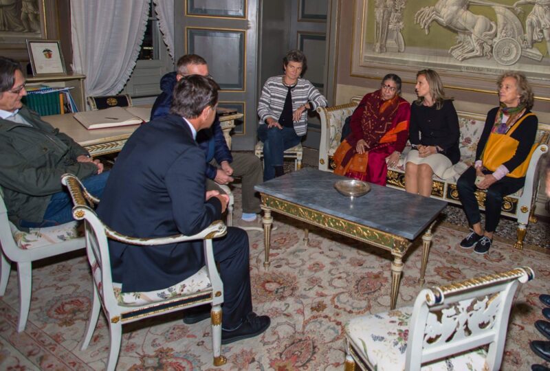 Il Sindaco di Bergamo Giorgio Gori ha incontrato poco fa l’attivista indiana Vandana Shiva a Palazzo Frizzoni: è stata un’occasione per raccontare la ratio della settimana dell’agricoltura di cui Shiva è ospite in questi giorni, ma anche per parlare dei progetti di Bergamo sui temi dell’agricoltura urbana e periurbana. Vandana Shiva (ha visitato in questi giorni anche gli impianti della Montello, la Valle della Biodiversità di Astino e incontrato tante istituzioni del territorio, grazie all’impegno del biodistretto di Bergamo) ha rimarcato il fatto che quel che sta succedendo a Bergamo in questi giorni ha “enormi implicazioni per il resto del mondo: dobbiamo piantare i semi giusti per un futuro migliore.”