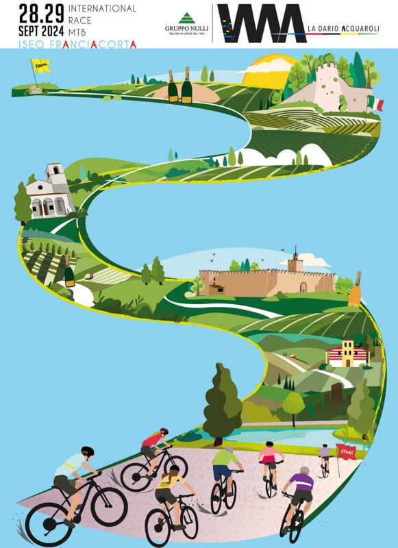 Con l’annuncio della nuova data, sveliamo anche la locandina e la linea grafica di La Dario Acquaroli 2024. Un gruppo colorato di biker che, inforcata la loro mountain-bike, attraversano la splendida Franciacorta tra torbiere, lago, vigneti, natura rigogliosa, antiche dimore e ville storiche, castelli, chiese e l’immancabile bottiglia di bollicine. L’essenza di questa terra. L’essenza di La Dario Acquaroli che aspetta anche quest’anno migliaia di appassionati biker.