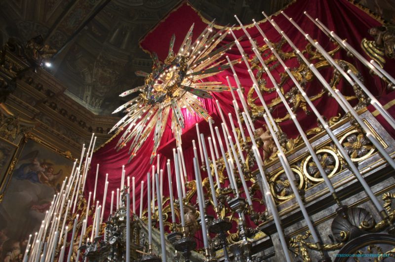 Una coincidenza unica e mai vista, che unisce nella preghiera i giorni cupi dell’emergenza e gli auspici per una nuova rinascita. La comunità parrocchiale di Gandino si appresta a vivere in maniera del tutto inedita e particolare la ricorrenza liturgica del Corpus Domini, di norma accompagnata da una processione nota per l’incredibile apparato esteriore di grande richiamo. La pandemia rende impossibile per quest’anno la processione, ma è causa diretta di una particolare coincidenza, poiché a causa del lockdown è tuttora presente nella monumentale Basilica di S.Maria Assunta la “macchina del Triduo”, di norma allestita nella seconda domenica di quaresima. Eccezionalmente quindi la Raggiera opera settecentesca dei maestri Caniana sarà accesa quest’anno in coincidenza con la festività del Corpus Domini, preceduto a partire da giovedì 11 giugno dalle Giornate Eucaristiche. Sabato 13 e domenica 14 giugno la predicazione sarà proposta del rettore del Seminario di Bergamo, don Gustavo Bergamelli che svilupperà il tema: “Eucaristia, fonte e culmine della Chiesa, nel vivo ricordo dei nostri defunti”. Le celebrazioni (con necessario distanziamento di legge) sono in programma sabato alle 18 e domenica alle 8, 10.30 e 18. Nel pomeriggio alle 15 ci saranno rosario e benedizione.