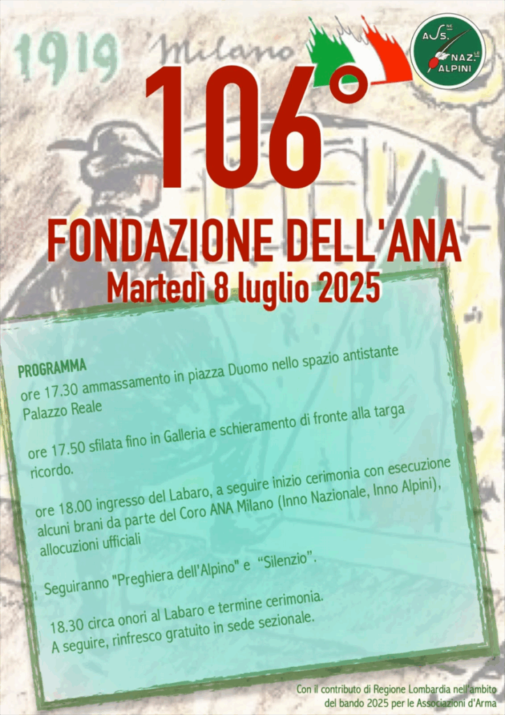 Centosei anni fa, l’8 luglio del 1919 nasceva a Milano l’Associazione Nazionale Alpini. Scorrono rapidi i tempi della nostra storia e con essi aumenta il peso dello zaino: ma, al tempo stesso, è proprio il tempo a confermarci che la nostra Associazione resta una realtà viva e vitale, protagonista della vita dei territori in cui operano i suoi 4.360 Gruppi, in Italia e all’estero. Mai come oggi i valori orgogliosamente propugnati e difesi dall’Ana costituiscono un punto di riferimento per una società che stenta a riconoscersi nella sua stessa storia. Proprio per questo è diventato fondamentale trasmettere alle nuove generazioni i nostri valori: per questo i nostri Campi scuola, nazionali e sezionali, si confermano strumento importantissimo e validissimo e ci conforta il successo che raccolgono tra i ragazzi anche tra quelli tra i 17 e i 24 anni. Allo stesso tempo assume sempre maggior rilevanza e significato nell’ambito delle iniziative Ana la cerimonia di consegna del cappello alpino ai giovani volontari dell’Esercito in ferma iniziale triennale che, dopo i corsi ad Aosta, si accingono ad entrare nei Reggimenti delle penne nere e a cui consegniamo la tessera di socio: dopo gli appuntamenti a Bassano, in Adamello e ad Aosta abbiamo proprio in questi giorni imposto il cappello con la penna nera a 130 giovani soldati e soldatesse a L’Aquila. Gli alpini restano il corpo più amato dalla gente che ne apprezza, oltre all’intervento solidale assolutamente gratuito in favore di chi si trova in difficoltà, spirito di servizio, serietà e innata capacità di condivisione. Ed in questa direzione è andato anche il Governo con la nuova legge sul Terzo Settore che ha incluso, riconoscendo la specificità della sua capacità di operare nella Protezione civile, anche l’Associazione Nazionale Alpini coi suoi volontari. Buon 106° anniversario, dunque, cari alpini, soci e protagonisti della nostra meravigliosa associazione: l’8 luglio celebreremo solennemente la ricorrenza nella Galleria Vittorio Emanuele di Milano ed esporremo con legittimo orgoglio il Tricolore davanti a tutte le nostre sedi in Italia e nel Mondo. Quindi, come sempre, vi invio il mio più fraterno abbraccio alpino. Viva l’Italia e viva gli alpini!