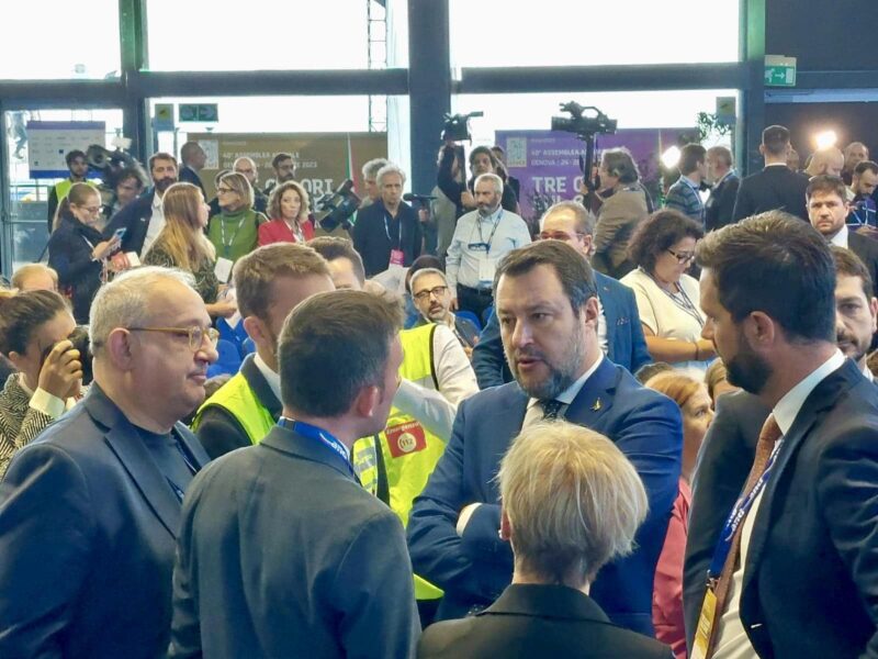 Nella foto il ministro Salvini all’Assemblea Generale dell’Anci (Associazione Nazionale Comuni Italiani)