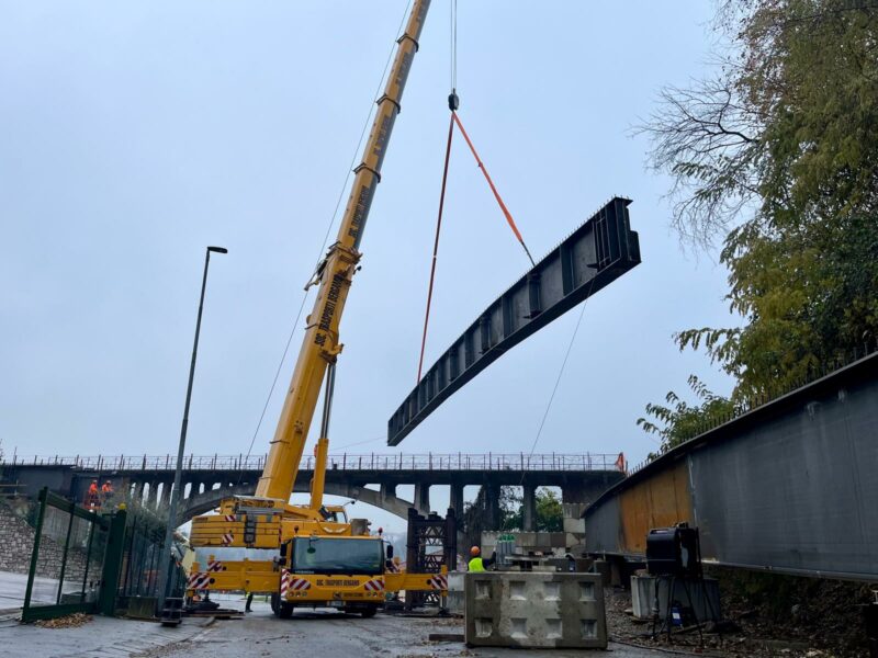 TEB comunica che si è conclusa la posa delle travi della seconda campata del nuovo Ponte Rino a Villa D’Almè. Realizzato in acciaio e calcestruzzo, è composto di due campate, una con una luce di 24,7 metri e la seconda con 40,9 metri di luce che appoggiano su due spalle e una pila intermedia. Il nuovo ponte, che sarà largo 9 metri e ospiterà i due binari della nuova linea tramviaria, sorgerà accanto a quello esistente, che continuerà ad ospitare la pista ciclabile in affiancamento alla Linea T2, senza mai interferirne con il suo sviluppo longitudinale.